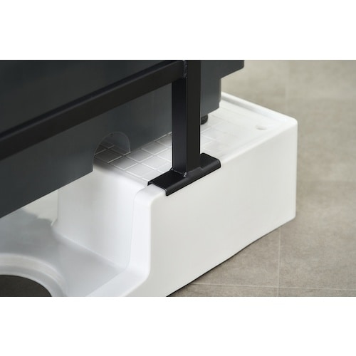 省スペースで設置可能な突っ張り式のランドリーラックです。天井と床でつっぱるだけで設置ができます。洗濯パン上にも設置可能です。(※一部の洗濯パンには設置できない場合があります。 |