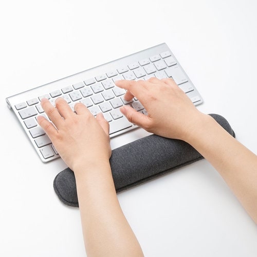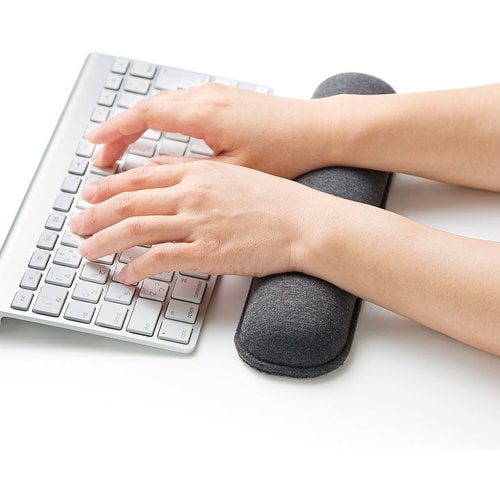 手首や腕、肩の疲れを軽減するソフトなクッション入りのリストレストです。やわらかクッションで手首の疲れを軽減するリストレストです。ノートパソコンや小型キーボードに最適なミドルサイズです。 |