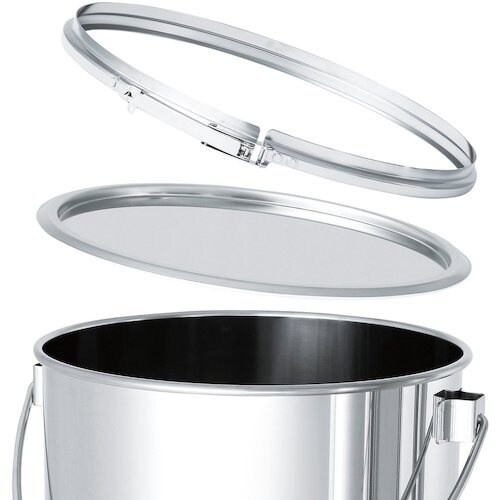持ち運び用に吊り下げ用の取手(ツル)を付けました。粉体や液体等の一時保管や運搬用として手軽な密閉容器です。空の状態の時に積み重ねが出来る省スペースタイプの密閉容器です。液体・粉体などの保存容器。 |