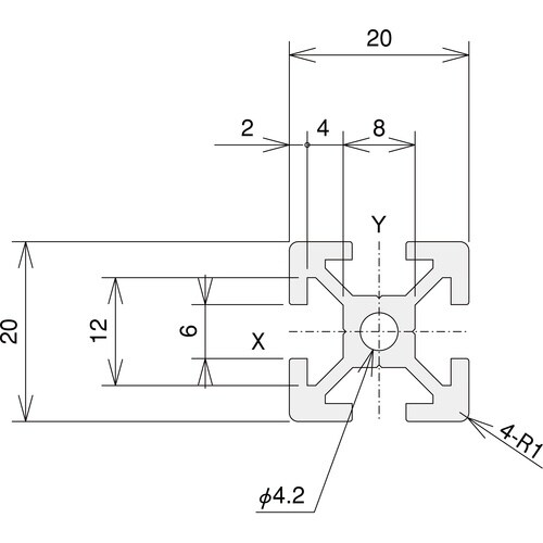 幅(mm):20 | 高さ(mm):20 | 長さ(mm):1000 | T溝深さ(mm):36 | その他仕様:SUS(株)製TナットSS(先入れ)…