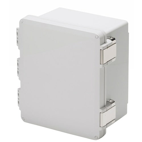 高強度のポリカーボネート樹脂製で板厚が厚く、ラッチがステンレス製のIP68防水開閉ボックスです。・屋外用通信機・太陽光発電接続箱・FA用コントロールボックス等にご利用いただけます。 |