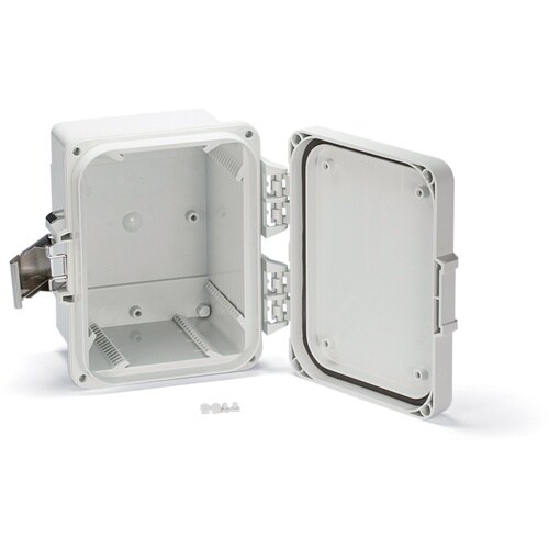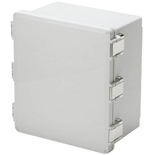 高強度のポリカーボネート樹脂製で板厚が厚く、ラッチがステンレス製のIP68防水開閉ボックスです。屋外用通信機・太陽光発電接続箱・FA用コントロールボックス等にご利用いただけます。 |