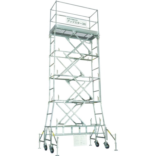 軽量かつばねバランス式のため手動で簡単に昇降可能です。作業床を下げ、アウトリガーを折りたたむとコンパクトになりエレベーターなどで移動が可能です。 |