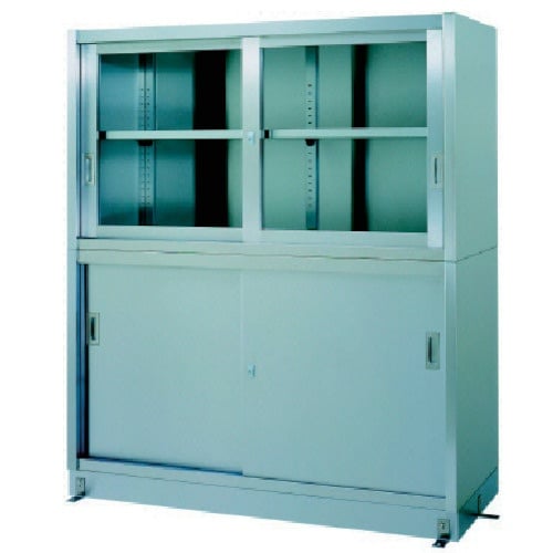 シンコー ステンレス保管庫 二段式ベース付 VG型 (上ガラス戸・下ステンレス戸) 1800×450×1750 VG18045 1台