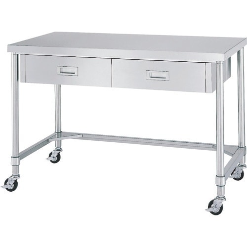 シンコー ステンレス(SUS430)作業台片面引出付三方枠キャスター付 φ100ナイロン車 900×750×800 WDTC9075N100 1台