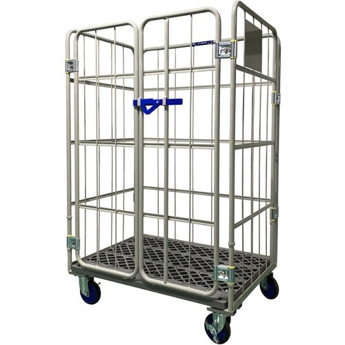 前面の観音扉は、本体と一体式で、折りたたみができ、ネスティングも可能です。観音式扉で左右に開きますので、下部の小物品も取り出せます。フレームはカチオン電着塗装+粉体塗装です。 |