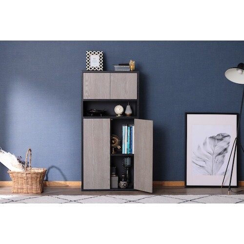 IRIS 296164 ウッドリビングキャビネット ブラック/アッシュグレー WRC540B 1台