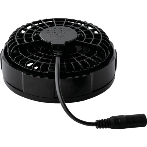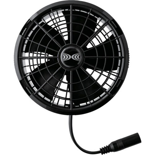 最大電圧25V、最大風量103リットル/秒の最強ファンバッテリーです。ファンの上蓋と羽根は取り外して水洗いできます。空調服用。 |