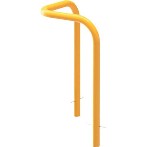 駐車場における歩道と車路の分離や、駐輪場の区画分離に適し、公園や広場の出入口に最適なアーチ型の車止めです。設置方法により自転車やバイクの進入を規制し、歩行者のみの通行が可能です。 |