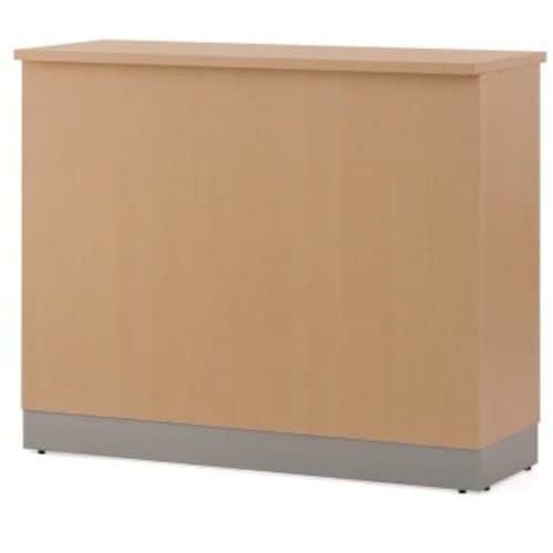 ベーシックなハイカウンターW1200。つま先が当たりやすい足元の汚れが目立ちにくいグレーの巾木付きデザインです。本体の内側に別売りのノルムハイカウンター棚板W1200用を設置してご利用いただけます。 |
