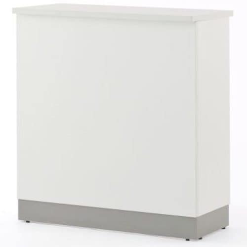 ベーシックなハイカウンターW900。つま先が当たりやすい足元の汚れが目立ちにくいグレーの巾木付きデザインです。本体の内側に別売りのノルムハイカウンター棚板W900用を設置してご利用いただけます。 |