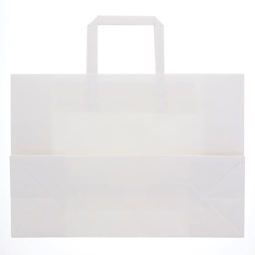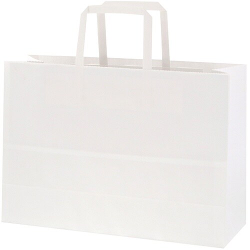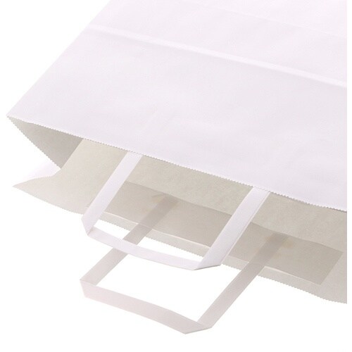 ハンドルは一般的な平紐の幅10mm幅よりも太めの12mm幅を採用しているので、手にやさしく持ちやすい紙袋です。オーソドックスな白無地なので、催事など色々な用途でご使用頂けます。 |