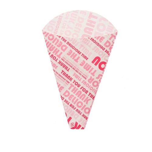 文化祭やバザー、お祭り、縁日など各種イベントで本格的なクレープ屋さんが出来る三角の袋です。100枚単位でお求めいただけます。店関係の方にもおすすめです。 |