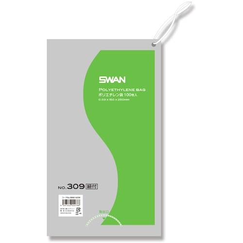 シモジマ スワン LD規格ポリ袋 スワン ポリエチレン袋 No.309 紐付 100枚入り 006616209 1袋(100枚) A04U-7607