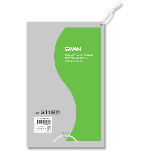 シモジマ スワン LD規格ポリ袋 スワン ポリエチレン袋 No.311 紐付 100枚入り 006616211 1袋(100枚) A04U-7608