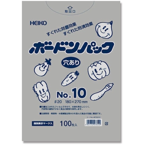 シモジマ HEIKO ボードンパック プラマーク入り #20 No.10 穴あり 100枚入り 006763310 1袋(100枚) A04U-7847