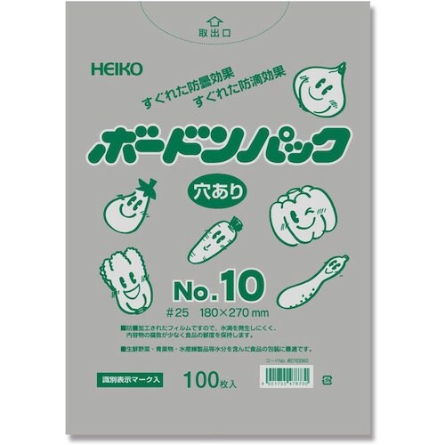 シモジマ HEIKO ボードンパック プラマーク入り #25 No.10 穴あり 100枚入り 006763360 1袋(100枚) A04U-7858