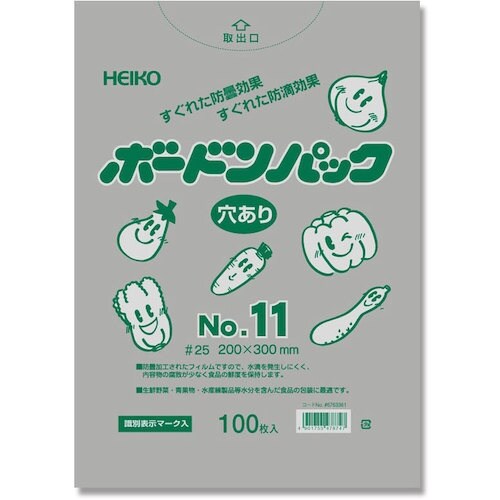 シモジマ HEIKO ボードンパック プラマーク入り #25 No.11 穴あり 100枚入り 006763361 1袋(100枚) A04U-7859