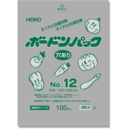 シモジマ HEIKO ボードンパック プラマーク入り #25 No.12 穴あり 100枚入り 006763362 1袋(100枚) A04U-7860