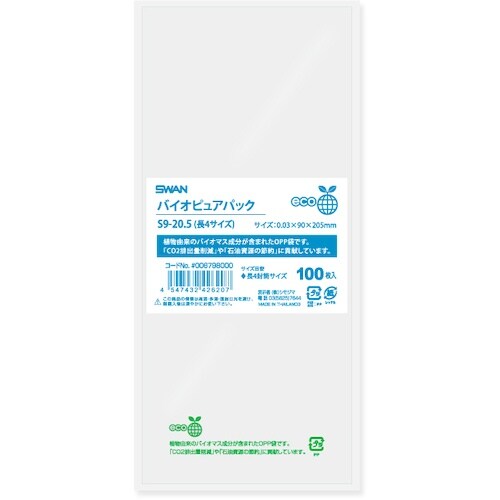 植物由来のバイオマス成分が含まれたOPP袋です。「CO2排出量削減」や「石油資源の節約」に貢献しています。S(サイドシール)はテープは付いておりません。長4封筒サイズです。 |
