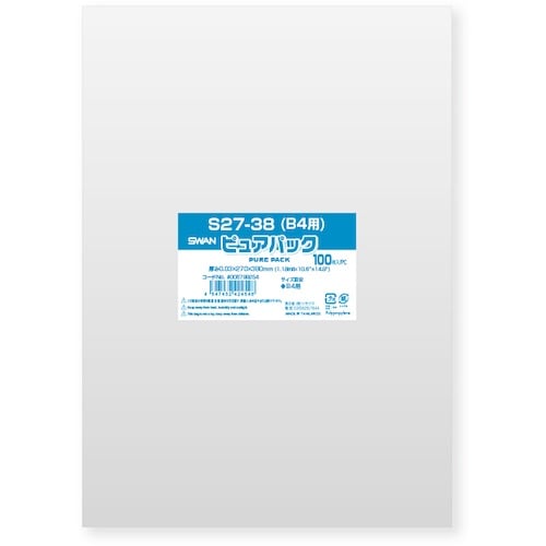 シモジマ スワン OPP袋 ピュアパック テープなし 27−38(B4用) 100枚入り 006798254 1袋(100枚) A04U-8044
