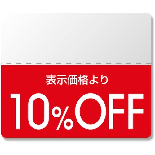 商品タグの裏面などに貼付して、割引販売をアピールするラベルです。上から10mmの部分にミシン目が入っており、ミシン目より上のみに糊がついています。