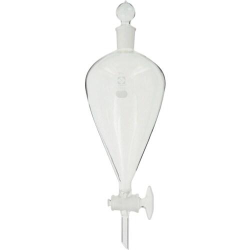 下部ガラス製コックに向かって円錐状に断面積が小さくなることで、球状よりも液液分離が効率よくおこなえます。