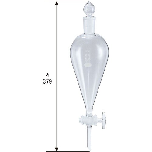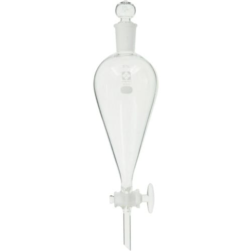 下部ガラス製コックに向かって円錐状に断面積が小さくなることで、球状よりも液液分離が効率よくおこなえます。 |