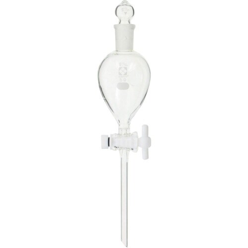 球形に近い形状なのでより効率よく撹拌され分離することができます。PTFE製のコックを使用している為、ノー・グリースの開閉が可能です。