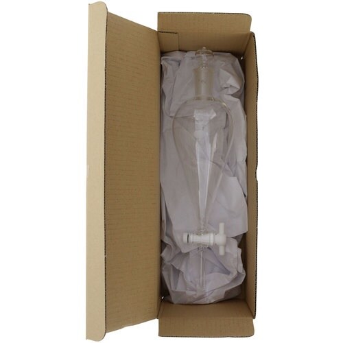 下部PTFEコックに向かって円錐状に断面積が小さくなることで、球状よりも液液分離が効率よくおこなえます。