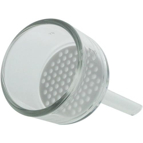 多数の孔のあるPTFE製目皿板がロート本体と分離できるので、洗浄・乾燥がしやすい構造です。沈殿や結晶を吸引ろ過する目的で使用され、ろ別した物質を処理しやすくします。 |