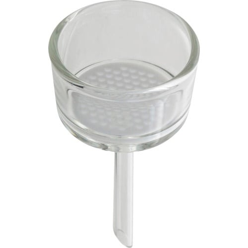 多数の孔のあるPTFE製目皿板がロート本体と分離できるので、洗浄・乾燥がしやすい構造です。沈殿や結晶を吸引ろ過する目的で使用され、ろ別した物質を処理しやすくします。 |