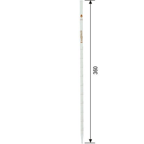 一定の体積の液体を量りとるために用いられます。ストレートな管に目盛が複数表示されています。同容量のホールピペットより目盛の精度は低いが、目盛が複数あるので、汎用性があります。 |