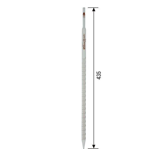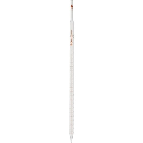 一定の体積の液体を量りとるために用いられます。ストレートな管に目盛が複数表示されています。同容量のホールピペットより目盛の精度は低いが、目盛が複数あるので、汎用性があります。 |