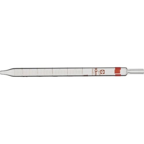 一定の体積の液体を量りとるために用いられます。ストレートな管に目盛が複数表示されています。同容量のホールピペットより目盛の精度は低いが、目盛が複数あるので、汎用性があります。 |