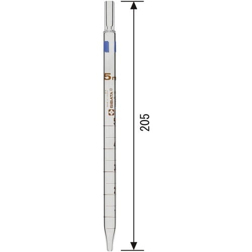 一定の体積の液体を量りとるために用いられます。ストレートな管に目盛が複数表示されています。同容量のホールピペットより目盛の精度は低いが、目盛が複数あるので、汎用性があります。 |