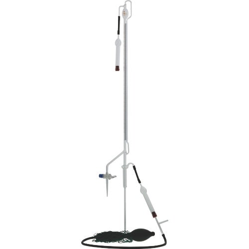 自動ビュレットは、ビュレットに比べ薬液の補充が2連球ゴムスプレーの操作で安全かつ正確に行えます。ゼロ(目盛)が自動的に調整できる構造となっており、ビュレットのゼロ合わせのコック操作の必要がありません。 |