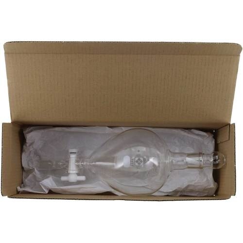 球形に近い形状なのでより効率よく撹拌され分離することができます。分液栓がSPC規格の為、一般的なすり合わせ(透明)の接手管と異なり、緻密で汚れ難くノー・グリースの接続が可能です。 |