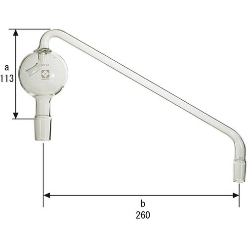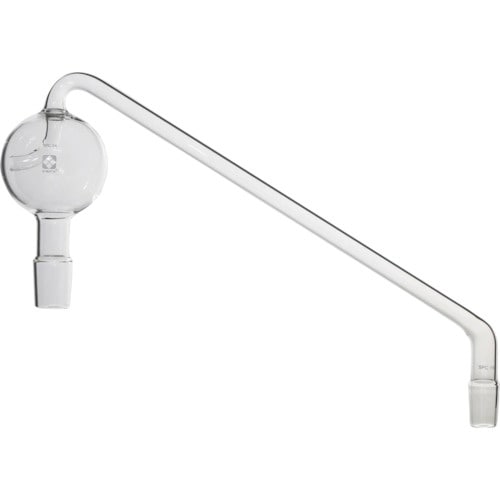 トラップ部が球形状をしたガラス製トラップ球です。両端がCコーン形のタイプです。トラップ球上部から側部に向かってガラス管が下向きの傾斜になっているのが特徴です。 |