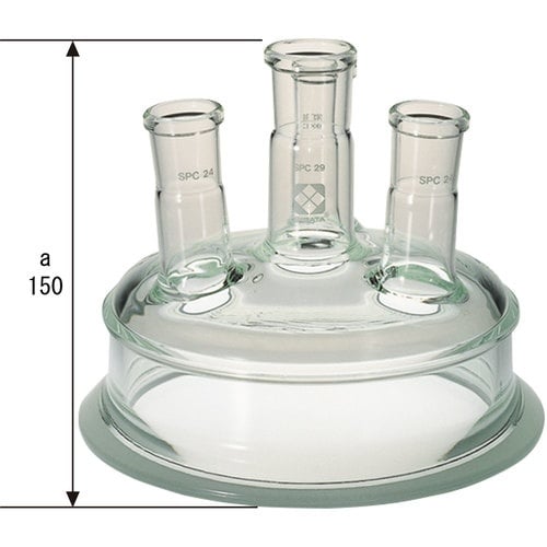 カバー部分とフラスコ部分が分離する、ガラス製のセパラブルフラスコ用カバーです。化学反応や生物反応など幅広い用途があります。