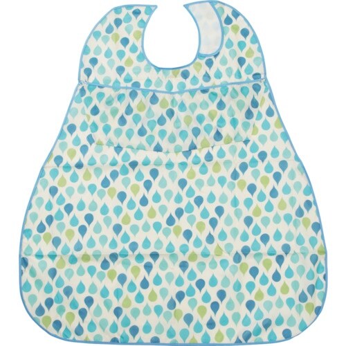 生地がやわらかく、こすれる音がしません。食べこぼしが多くてもポケットがしっかりキャッチします。首廻りはフリーサイズで調整自由。洗濯や熱にも強い。 |