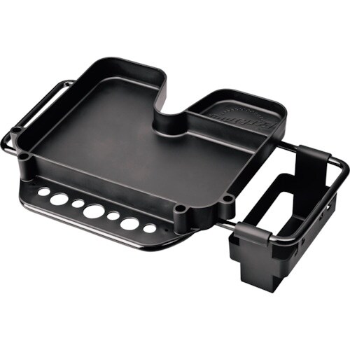 樹脂製ワークトレイ。部品や工具、溶剤などのボトルをすぐ近くに置いておくことができ、大幅に作業効率を高めます。パークツールのリペアスタンドのブラケット部にある穴に差し込むだけで簡単に取り付けが可能です。 |