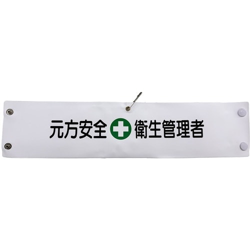 表示内容:元方安全衛生管理者 | 色:白 | 縦(mm):90 | 横(mm):400 | 取付方法:ホック、安全ピン | 材質・仕上げ:軟質塩化ビニ…