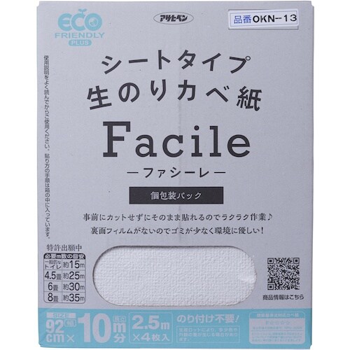アサヒペン シートタイプ生のりカベ紙Facile 92X2.5MX4枚入(10M分) OKN−13 119568 1本