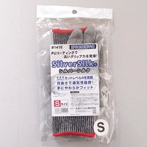 高強度ポリエチレン繊維のシルバーシルクを使用した耐切創手袋です。サニタイズ社の抗菌防臭加工が施されています。 |