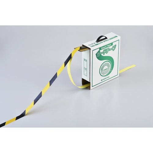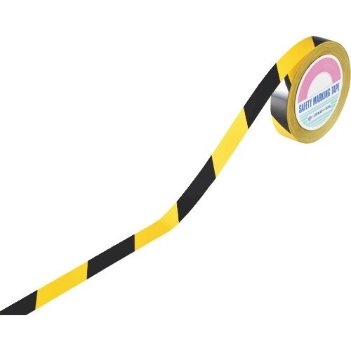 緑十字 ガードテープ(ラインテープ) 黄/黒 GTH−251TR 25mm×100m 再はく離タイプ 149016 1巻