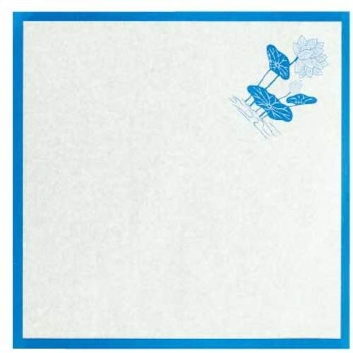 青枠・蓮の絵入りの敷き紙です。食品の飾りの敷き紙として。 |