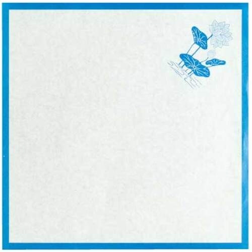 青枠・蓮の絵入りの敷き紙です。食品の飾りの敷き紙として。