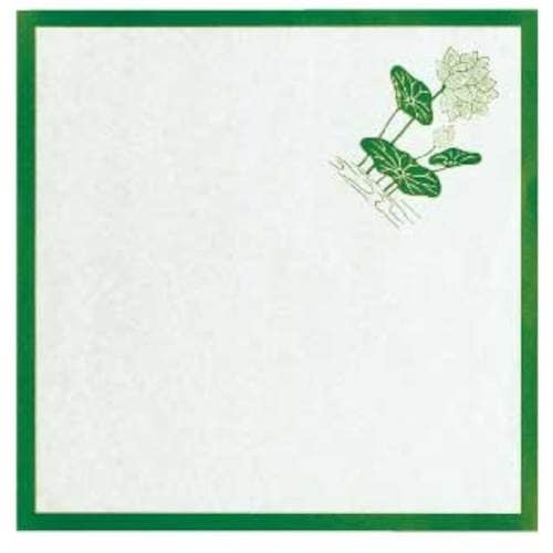 緑枠・蓮の絵入りの敷き紙です。食品の飾りの敷き紙として。