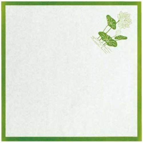 緑枠・蓮の絵入りの敷き紙です。食品の飾りの敷き紙として。 |